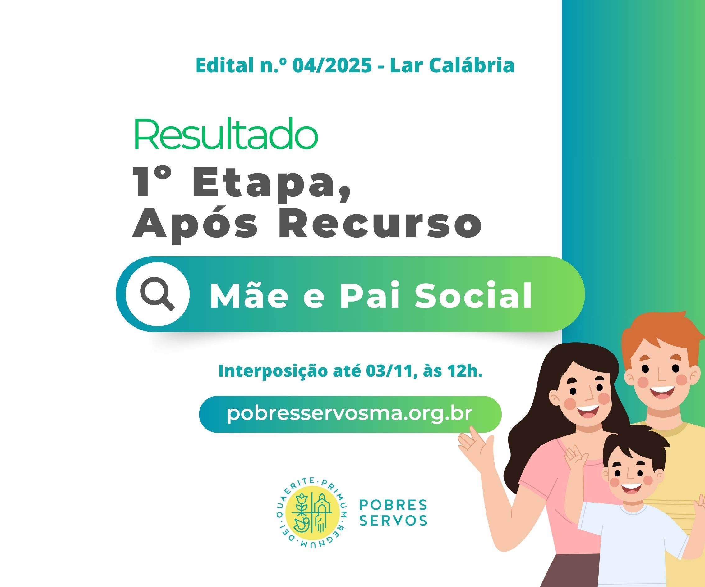 Resultado Primeira Etapa, Após Recurso - Edital 04/2025 - Lar Calábria